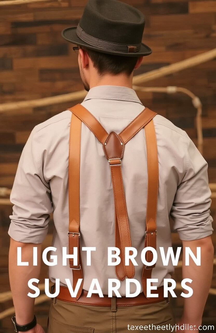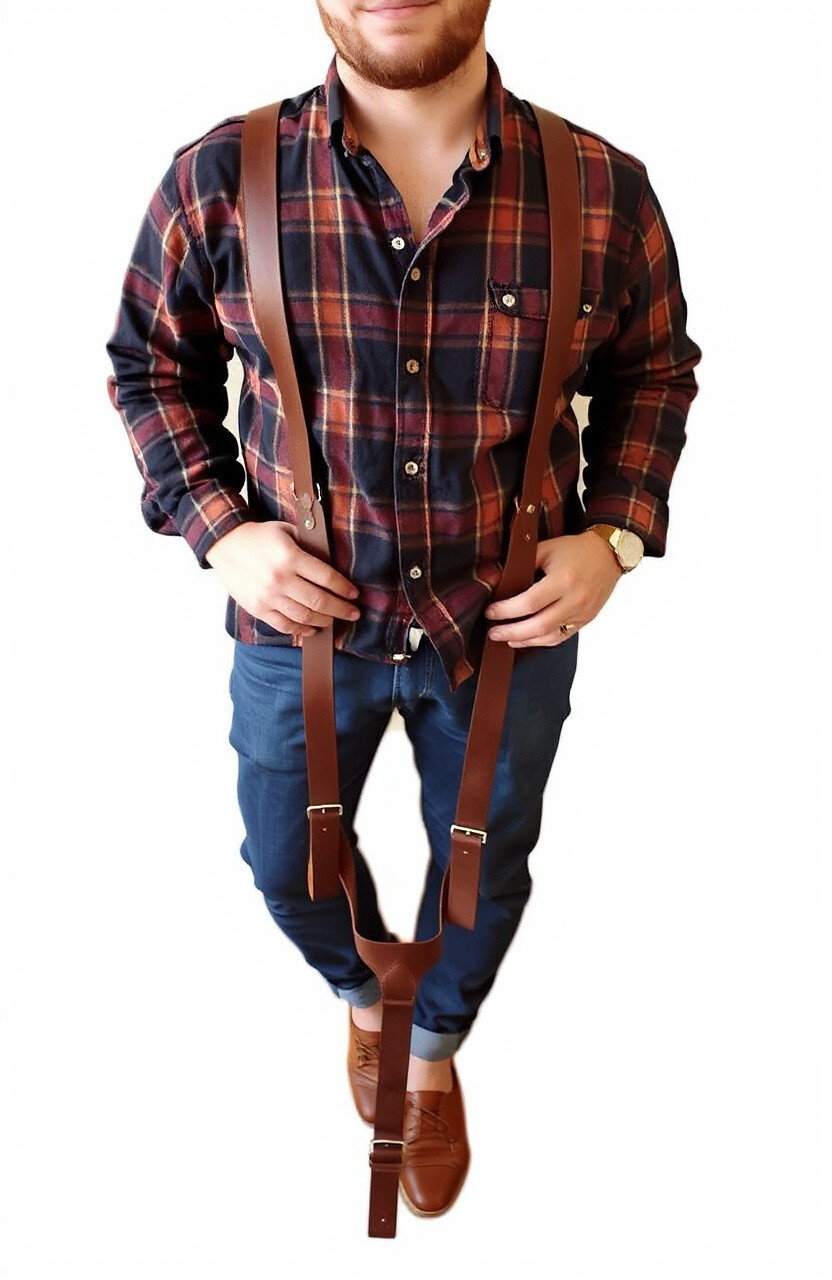 Light brown leather suspenders offer a soft and inviting color that’s perfect for casual or semi-formal occasions. They pair beautifully with denim or chinos, adding a touch of warmth to your look.