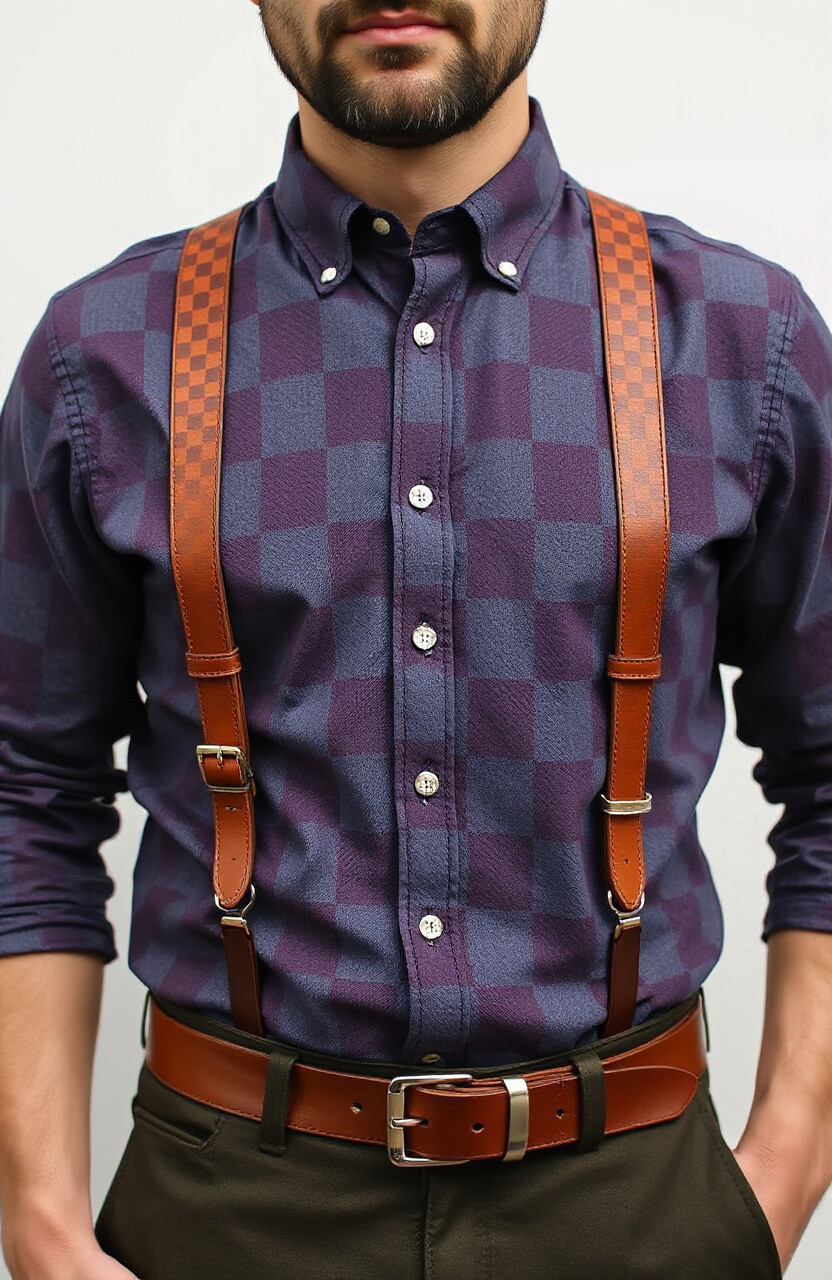 Checkered leather suspenders bring a playful and unique pattern to your outfit. They’re perfect for casual days or when you want to add a bit of personality to your look. Pair them with solid-colored shirts to let the checkered pattern stand out.
