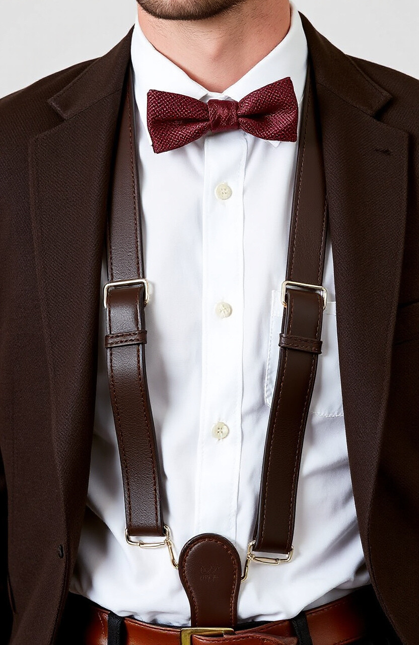 Cognac leather suspenders offer a rich and warm hue that’s both luxurious and versatile. They’re perfect for fall outfits, adding an element of sophistication. Pair them with earthy tones for a cohesive look.