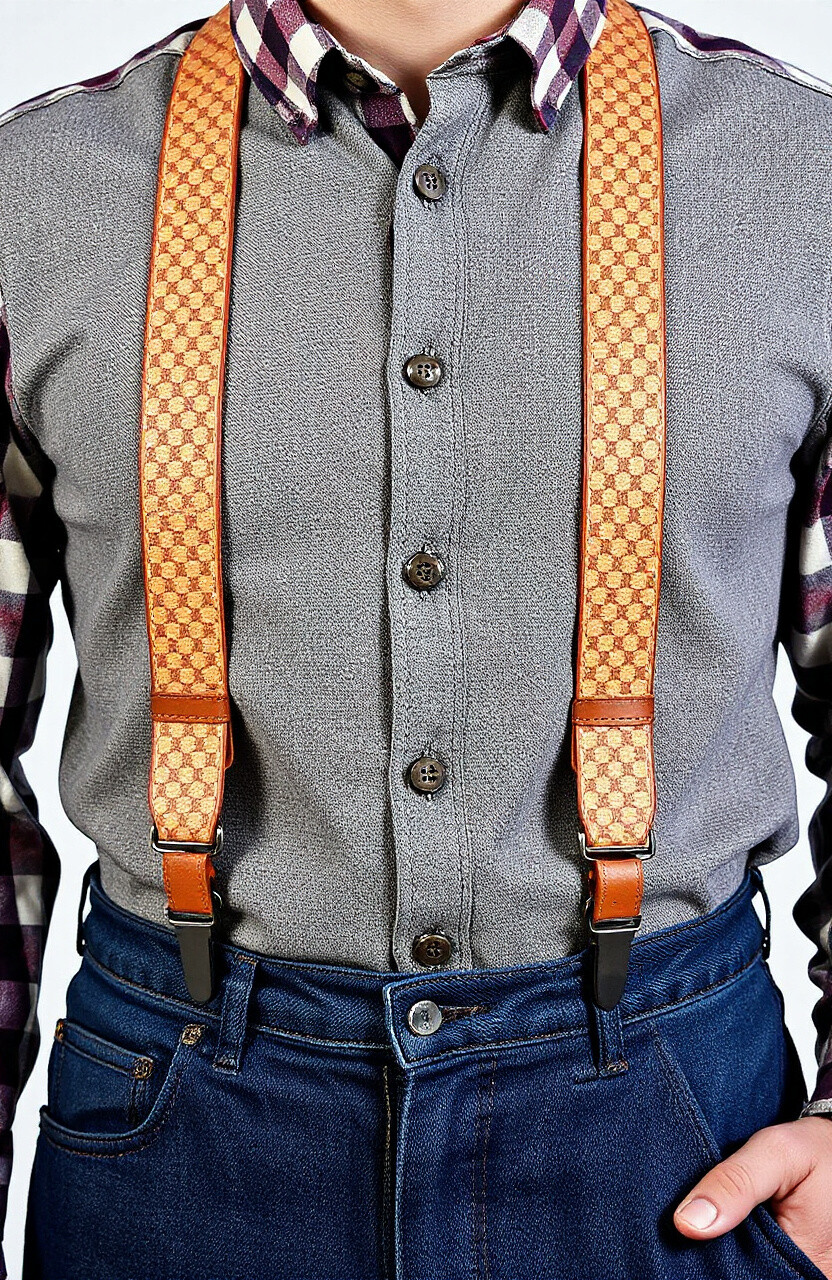 For a modern and artistic touch, geometric leather suspenders are a great choice. They feature unique patterns that add a bit of edge to your outfit, perfect for casual days or when you want to make a statement. Pair them with solid-colored shirts to let the designs shine.