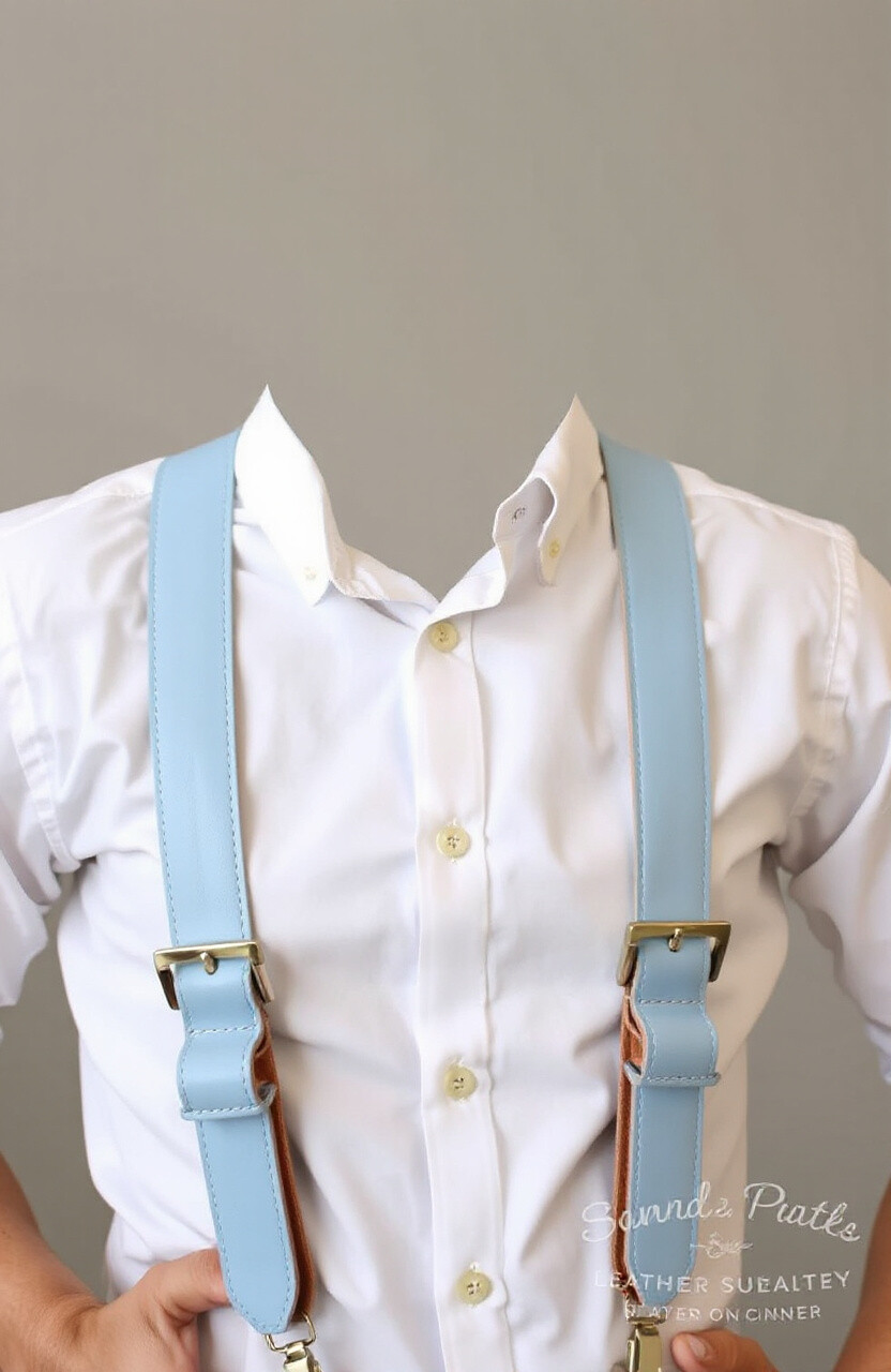Light blue leather suspenders offer a soft and refreshing color that’s perfect for spring or summer. They add a gentle splash of color to your outfit, pairing beautifully with neutral or pastel tones.