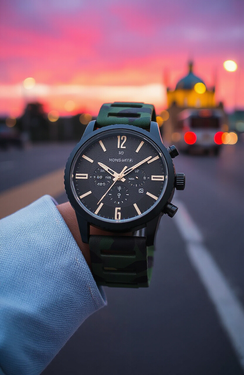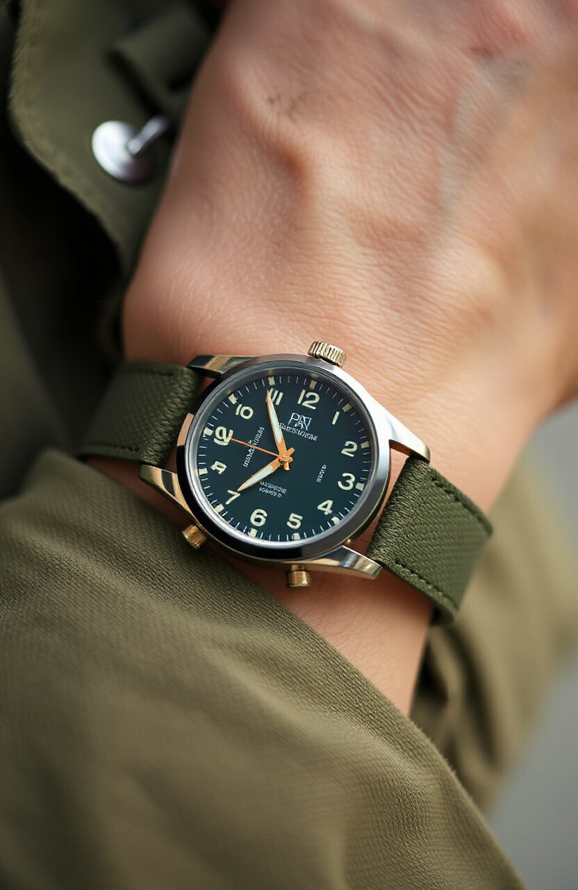 The military green strap offers a rugged yet stylish look. It’s perfect for the adventurous spirit.