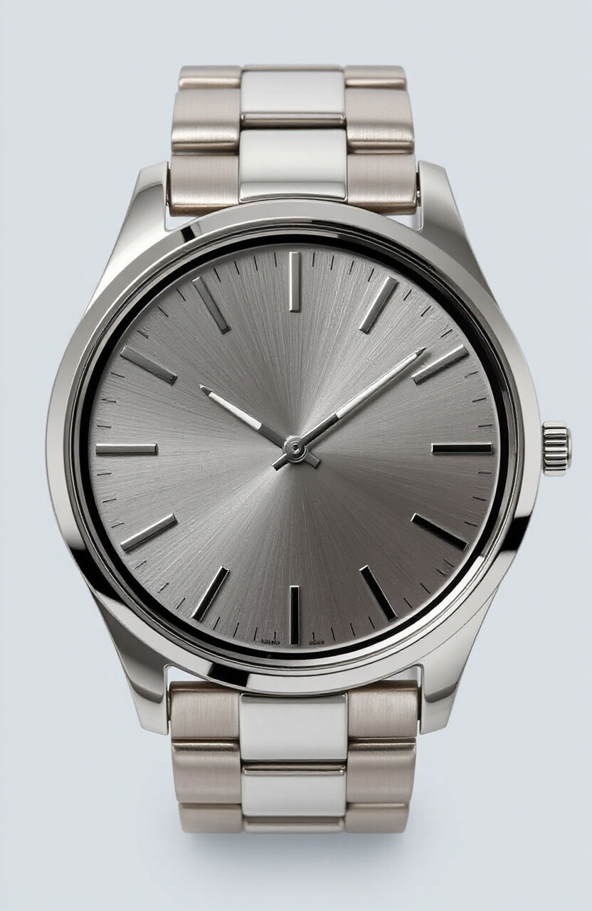 Shiny and sleek, the silver minimalist watch is a head-turner. Its metallic sheen gives it a modern edge.