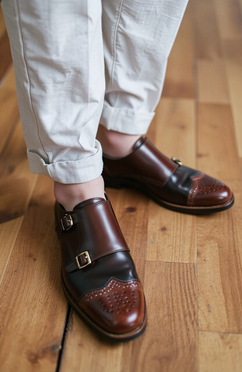 Two-tone monk straps are a visual treat. They offer a playful mix of colors for a dynamic look.