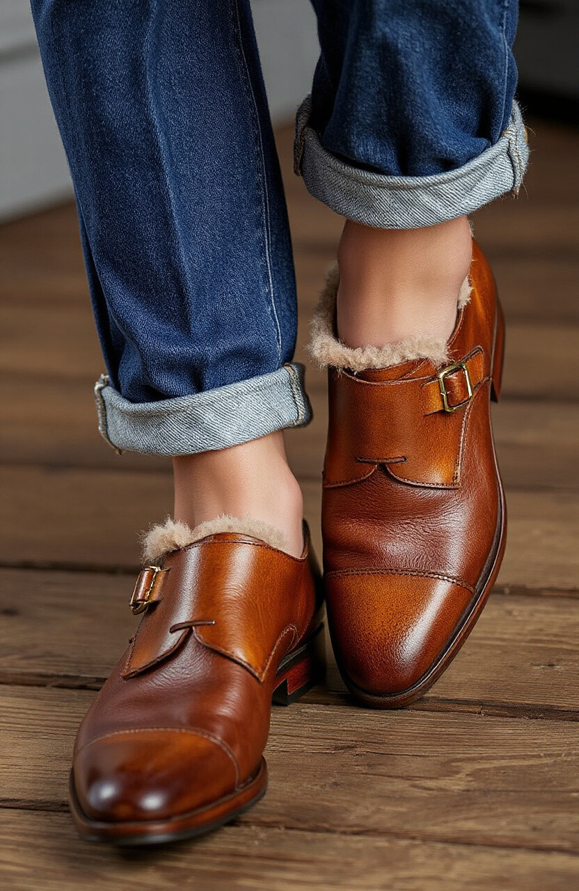 Faux fur lining adds warmth and luxury to monk straps. Perfect for colder weather.