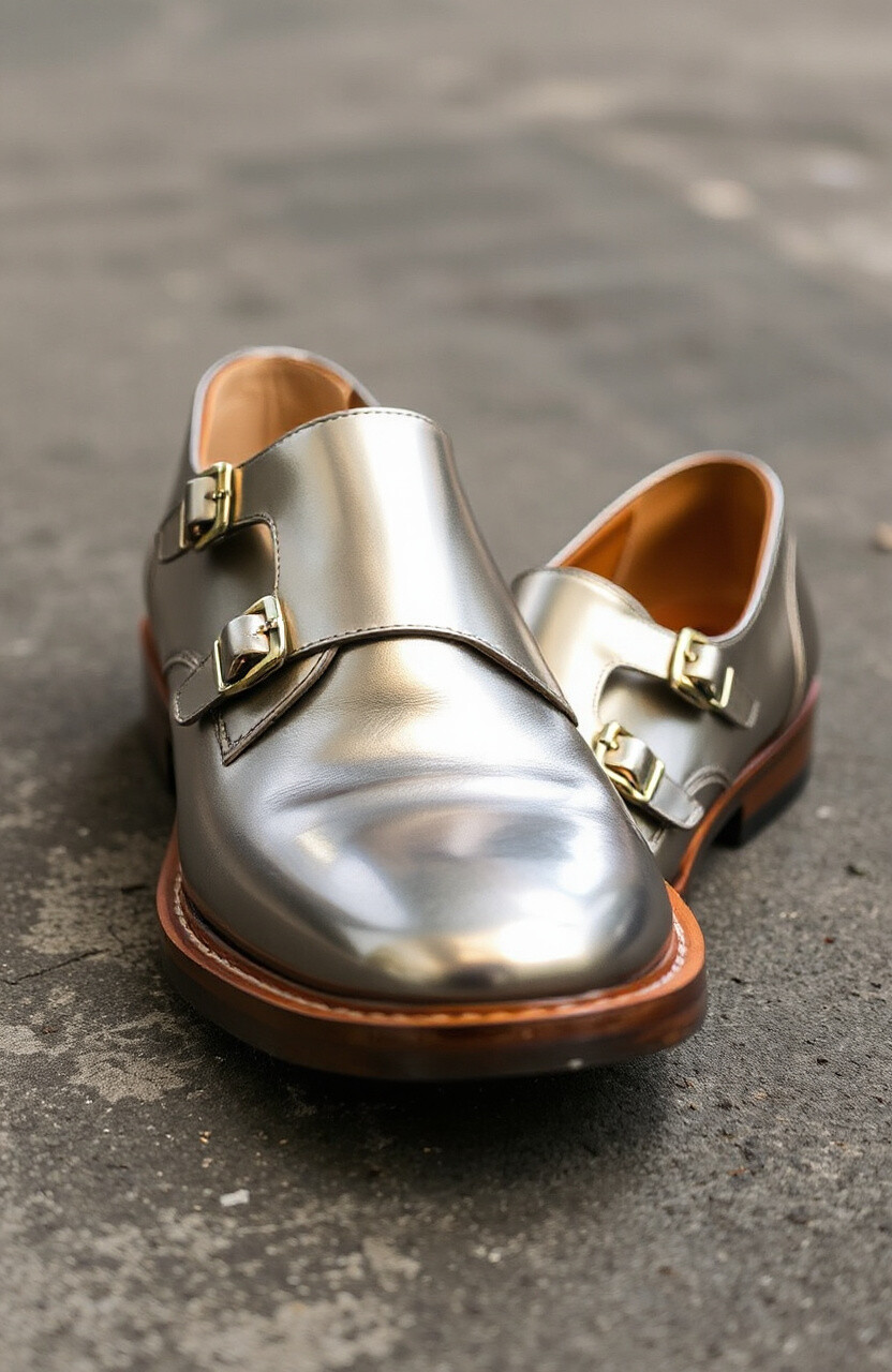 Metallic finishes add a futuristic touch to monk straps. Perfect for those who love to shine.