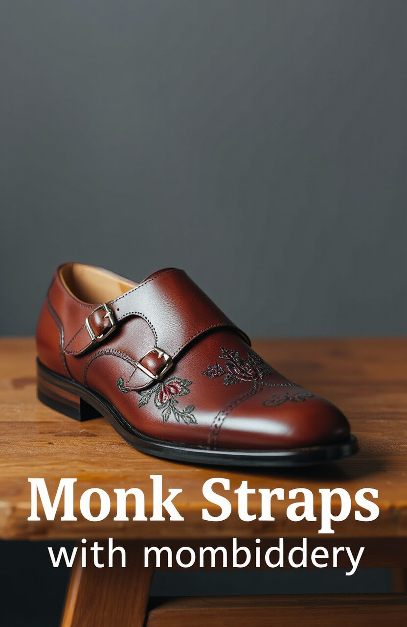 Embroidery on monk straps adds an artistic flair. Perfect for those who love detailed designs.