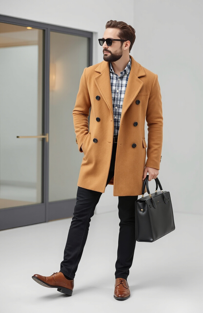 The camel coat is a timeless piece that exudes elegance. It’s perfect for keeping warm while looking sharp.