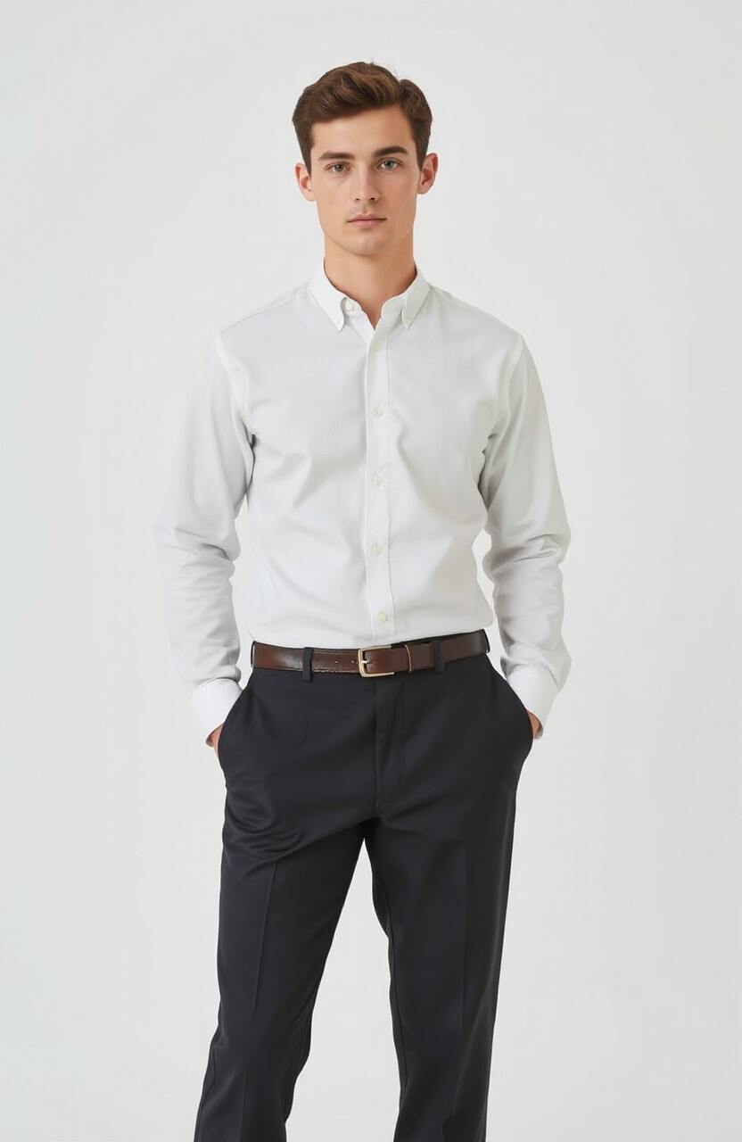 The classic white Oxford shirt is like a blank canvas in your wardrobe. It’s clean, crisp, and goes with almost anything you own. Perfect for both formal and casual settings, it’s the ultimate versatile piece.