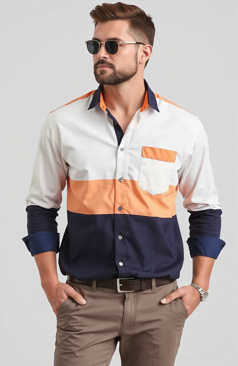 Pair with neutral bottoms to let the color block shine. Color block shirts are trendy and ideal for those who enjoy bold, fashion-forward styles.
