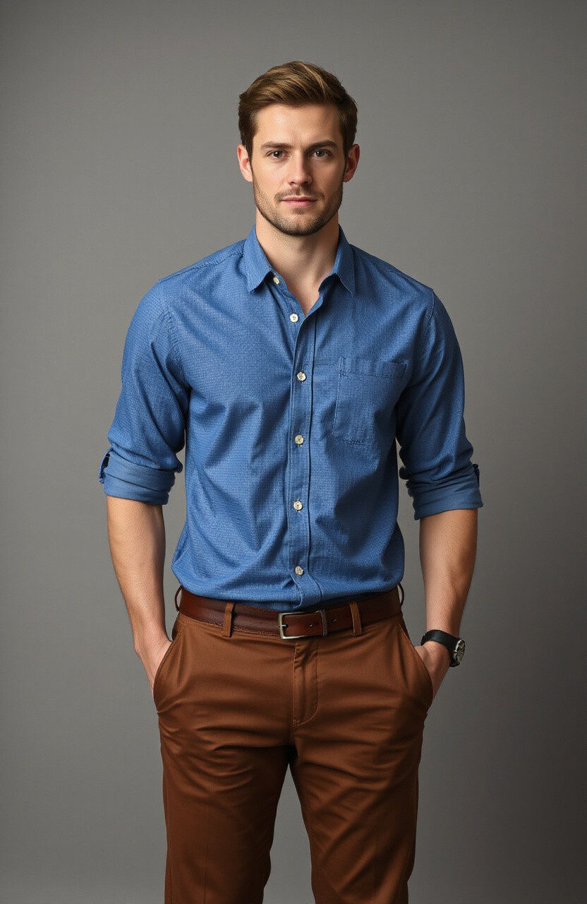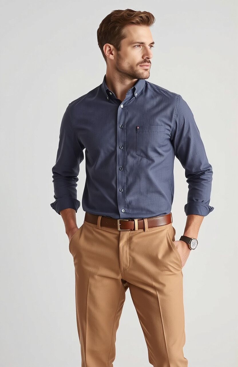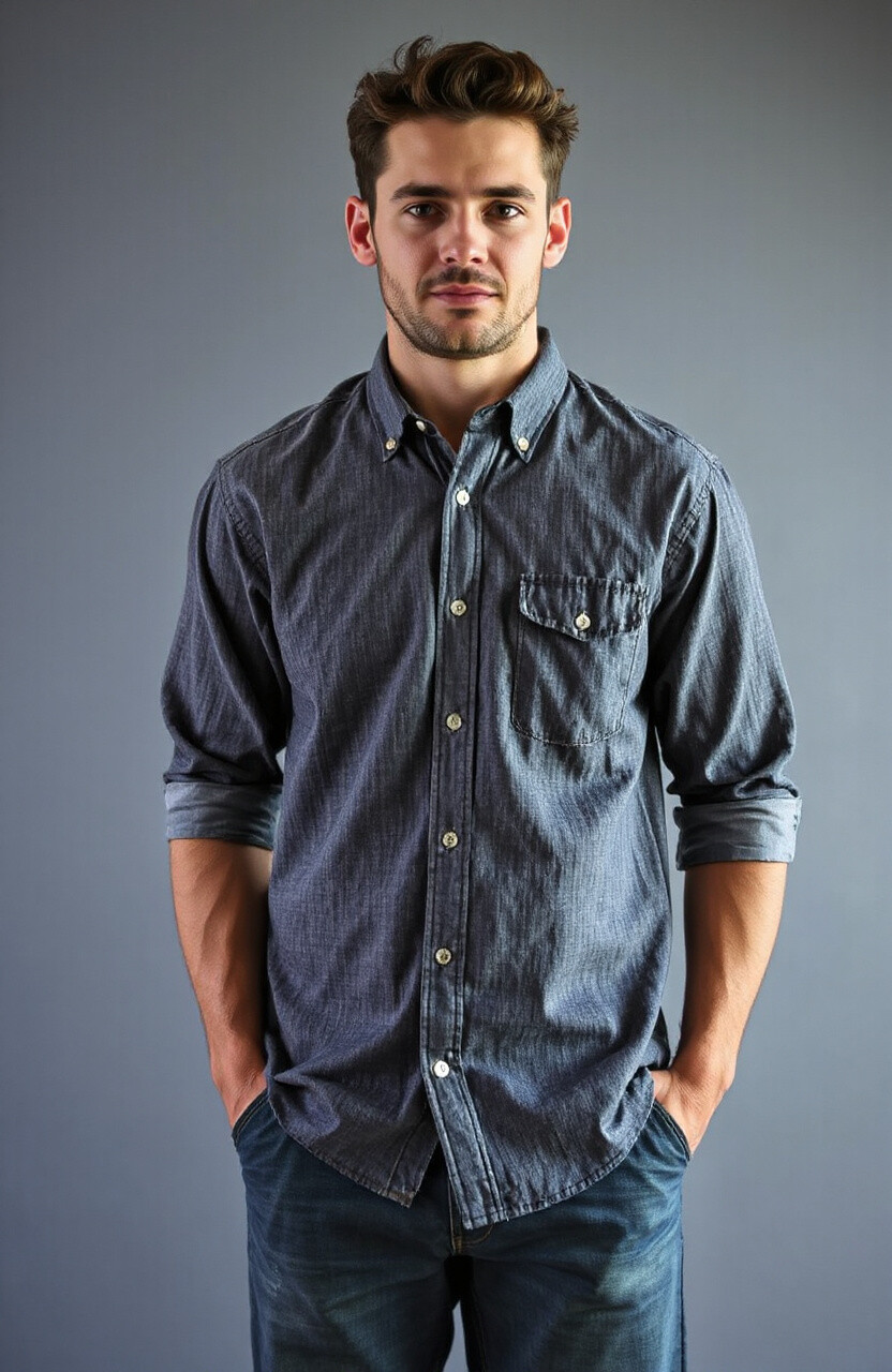 A denim Oxford shirt brings a rugged charm to your ensemble. It’s a fantastic choice for casual outings or weekend get-togethers. The texture of denim adds depth and interest to your look.