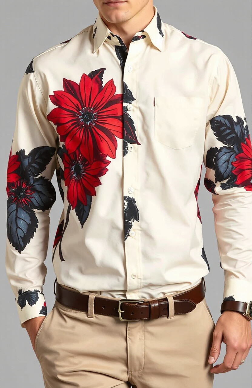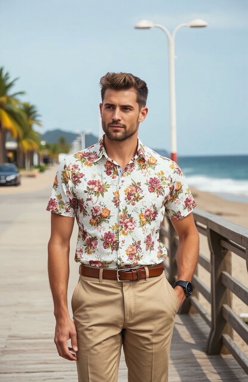 Choose muted florals for a subtle look or go bold with vibrant patterns. Pair with neutral trousers to keep the focus on the shirt. Florals are perfect for summer events or vacations.