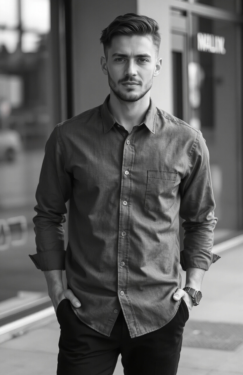 A monochrome Oxford shirt brings a sleek, modern look to your attire. Black or grey shirts are perfect for those who enjoy minimalist fashion.