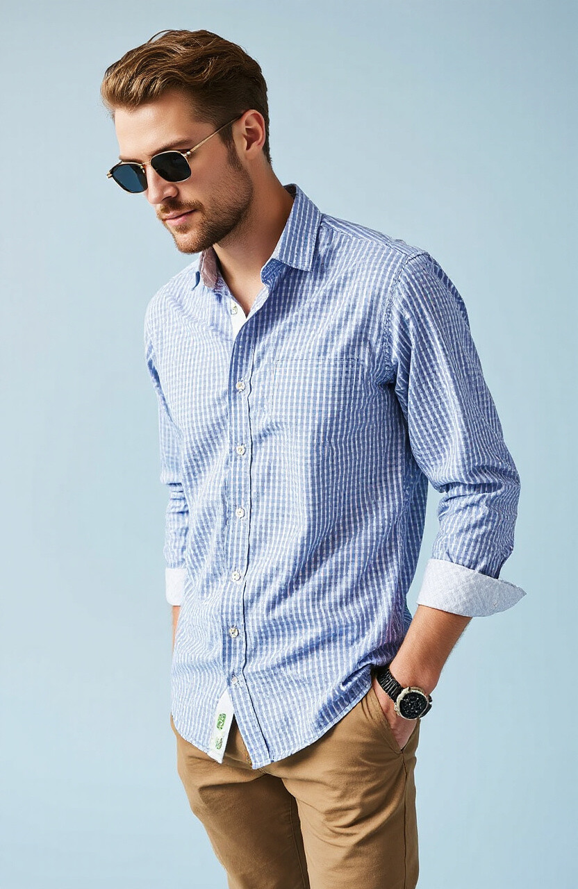 Pair with shorts or lightweight trousers for a cool, breezy look. Seersucker is classic and ideal for warm weather, offering comfort and style.