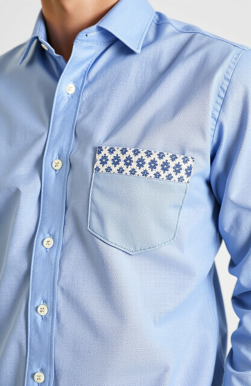 A patterned pocket on an Oxford shirt adds a playful touch to your look. It’s a small detail that can make a big impact.