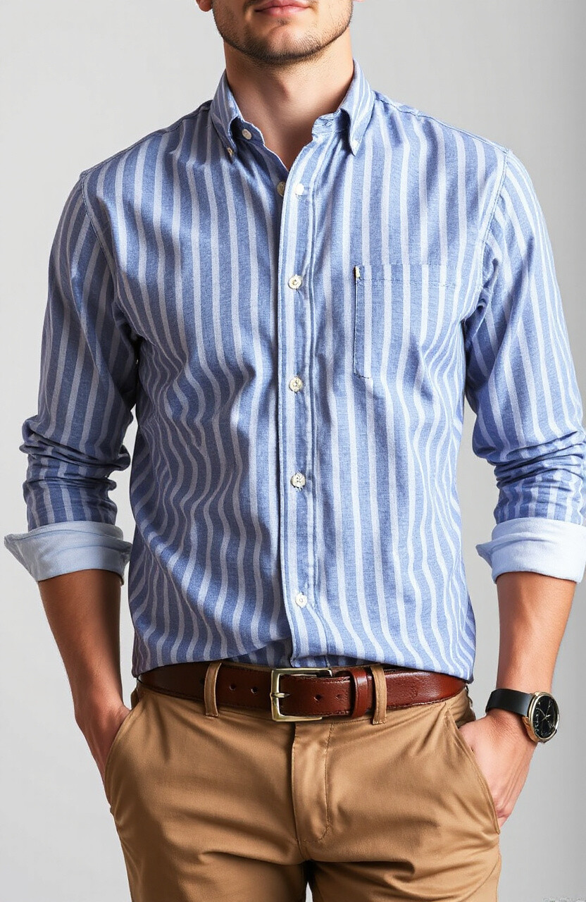 Stripes add a touch of sophistication and can elongate your figure. A striped Oxford shirt can make you look taller and slimmer. Choose between thin or thick stripes, depending on your style preference.