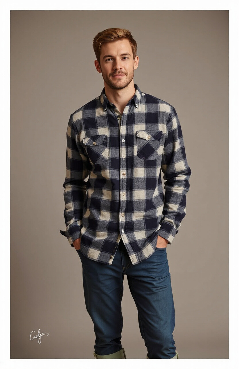Pair with jeans or chinos for a casual, rugged look. Flannel is soft and inviting, making it a favorite for autumn and winter.