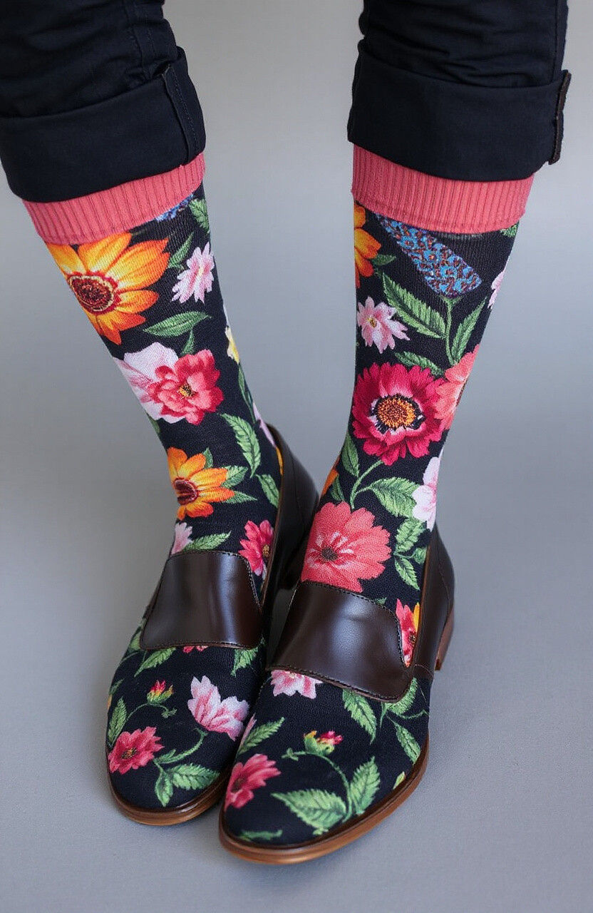 Floral socks bring a fresh, vibrant touch to your wardrobe. They’re not just for spring—they add color year-round.