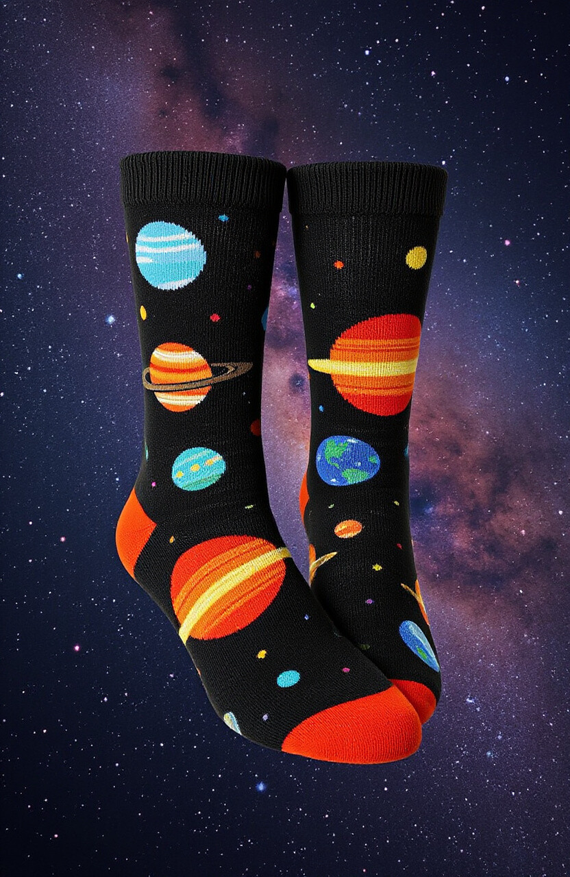 Socks featuring planets and galaxies are perfect for space enthusiasts. They bring the wonders of the cosmos to your feet.