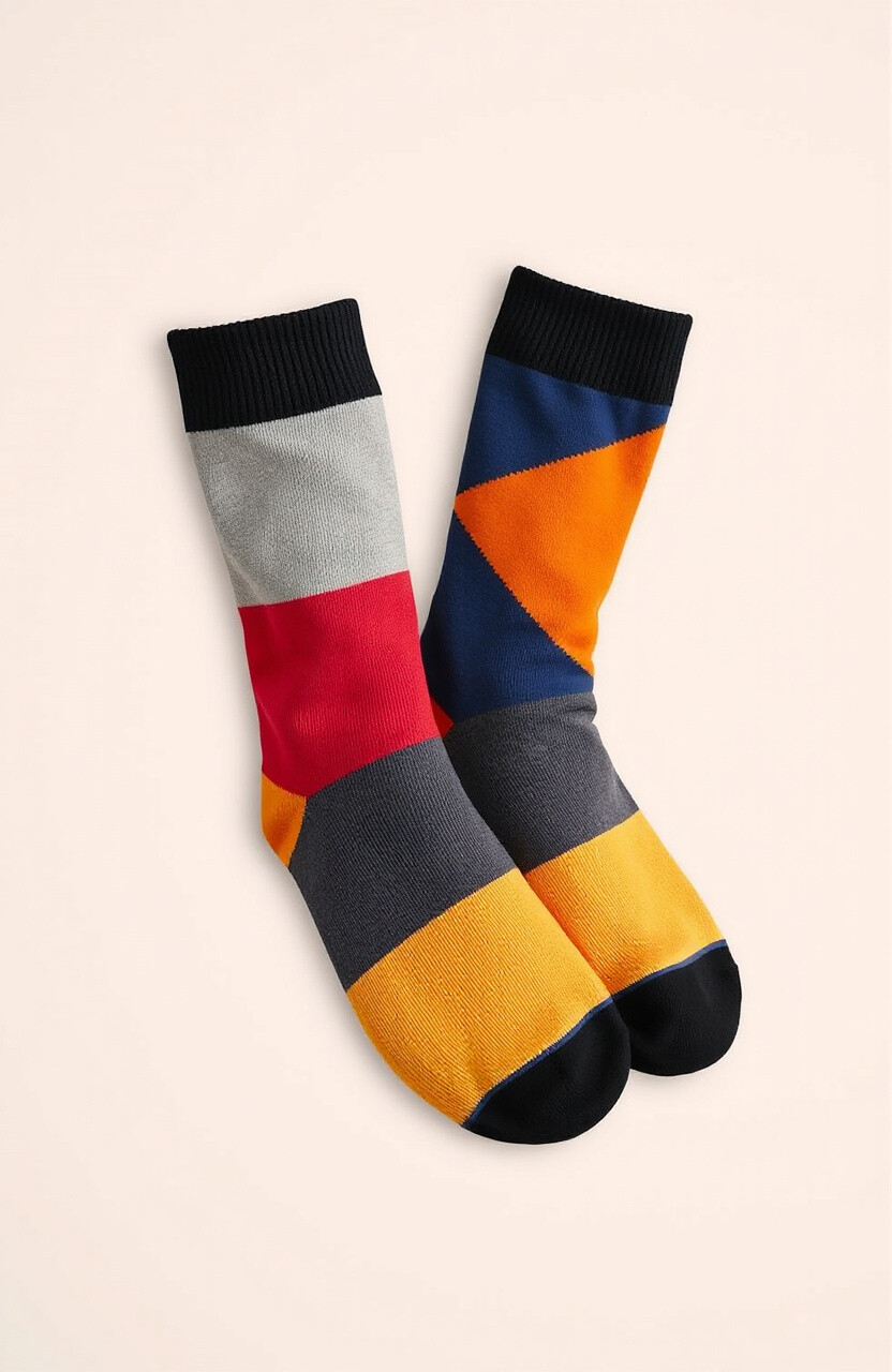 Color block socks feature large, bold sections of color. They’re eye-catching and perfect for adding a modern touch to any outfit.