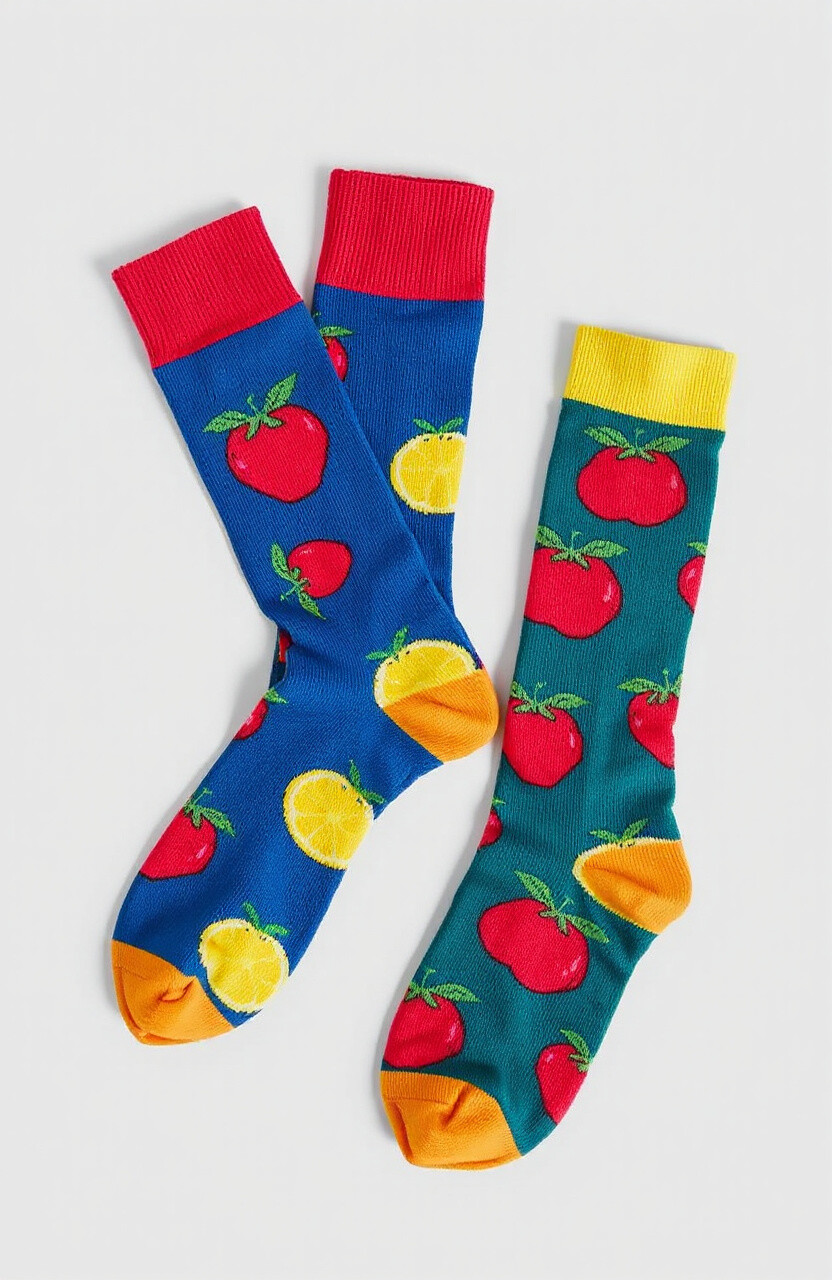 Fruit-themed socks bring a touch of humor and color to your outfit. They’re perfect for those who love quirky, fun designs.