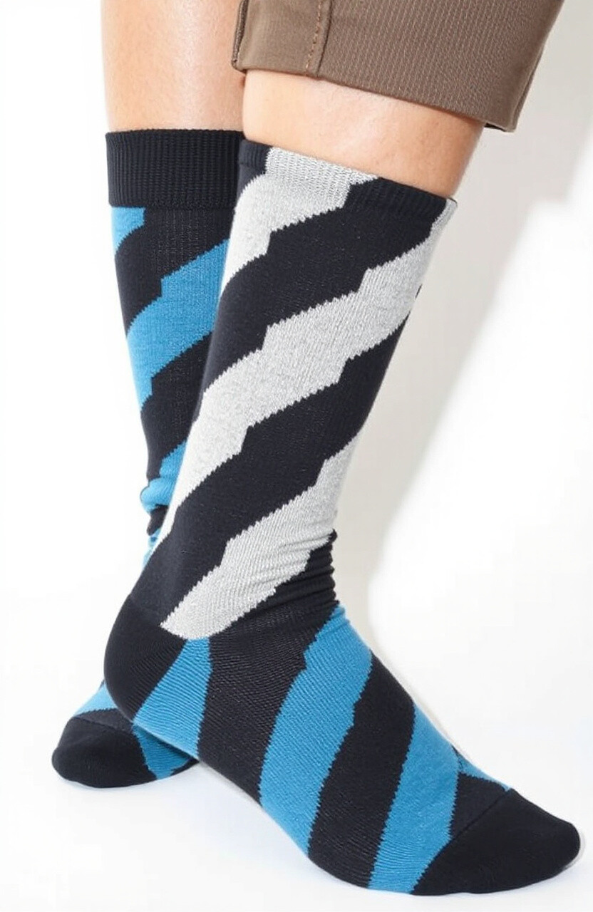 Stripes are a staple in the sock world, offering endless combinations of colors and widths to suit any taste. They’re visually striking and easily matchable.