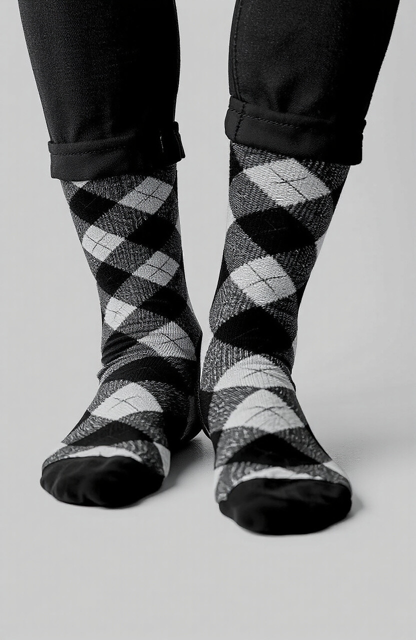 Black and white patterned socks are the epitome of elegance and simplicity. They go with everything and are always in style.