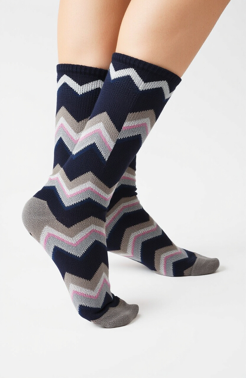Zigzag patterns offer a dynamic, energetic vibe. These socks are perfect for those who love to keep things lively.