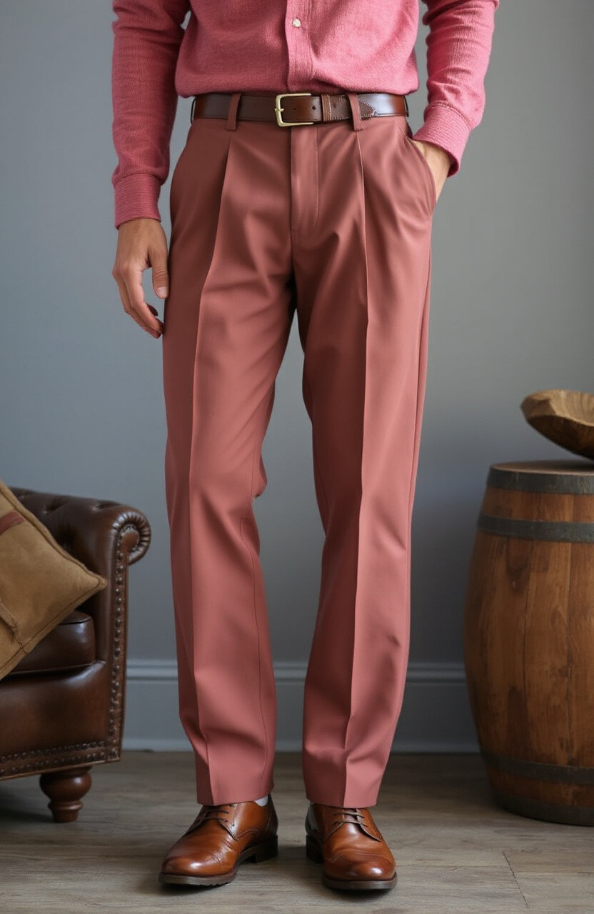 Dusty rose pleated pants add a touch of softness and elegance. They’re perfect for spring or summer.