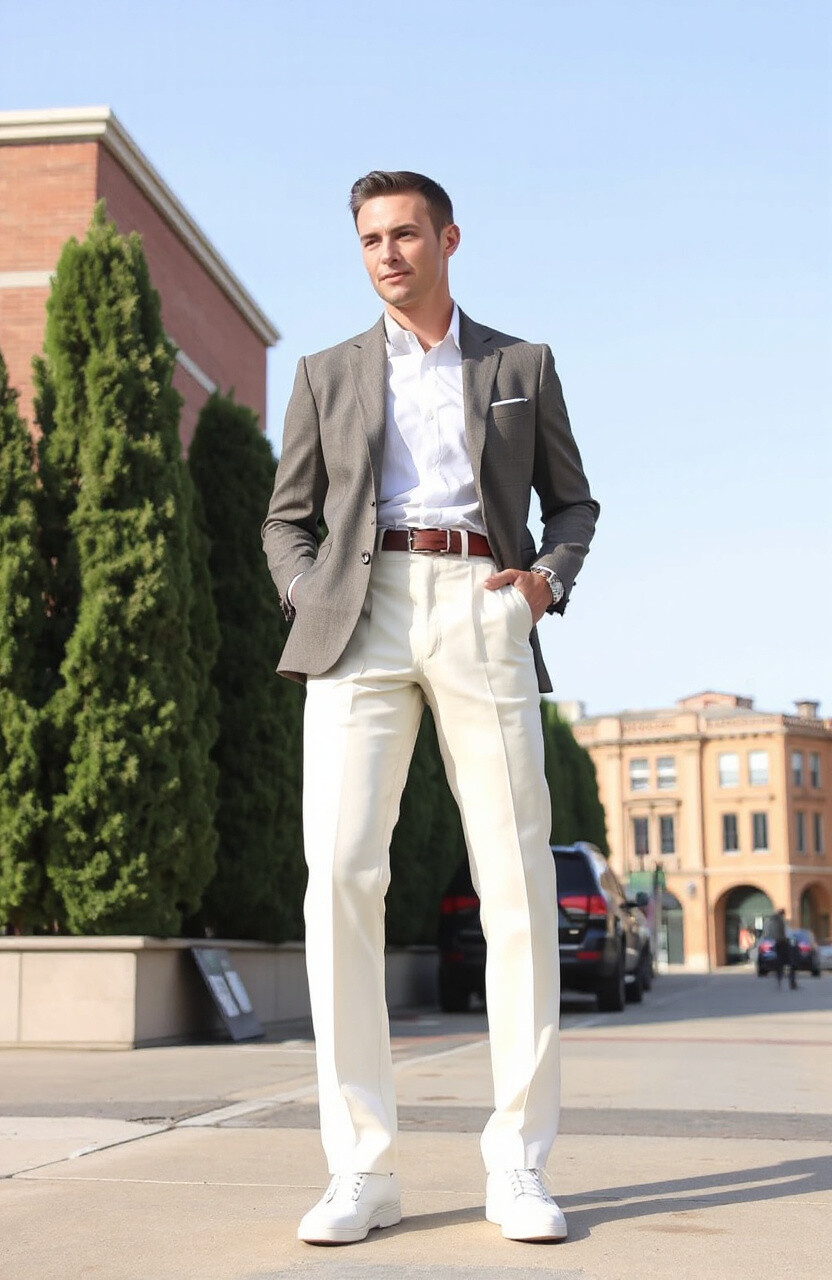 Khaki pleated pants are like a blank canvas. They go with everything! Whether you’re dressing up for a meeting or heading to a casual lunch, these pants have got your back. They’re timeless and never out of style.