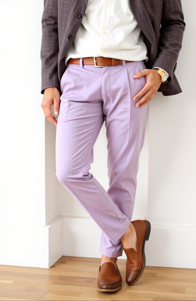 Violet pleated pants are bold and eye-catching. They add a pop of color to any outfit.