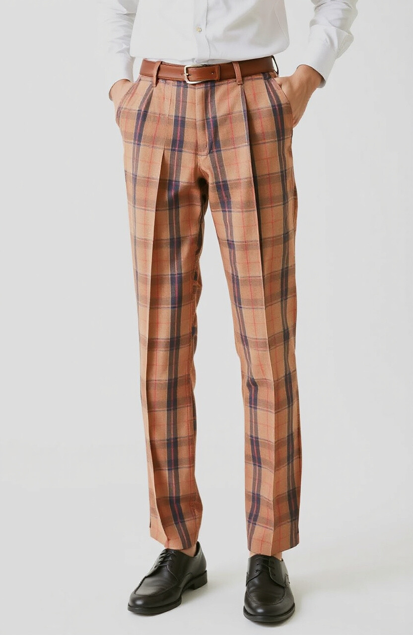 Plaid pleated pants are playful and full of personality. They bring a touch of whimsy to your outfit.