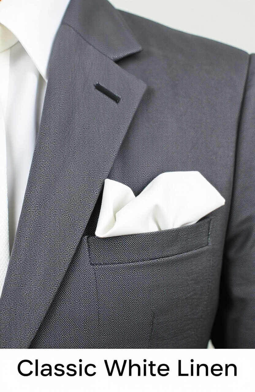 The classic white linen pocket square is timeless. It adds a crisp, clean look to any suit. Perfect for formal occasions or professional settings.