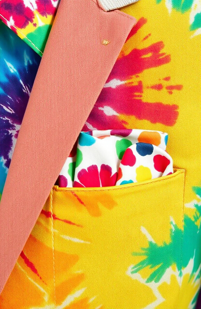 Tie-dye pocket squares are creative and colorful. They bring a bohemian vibe to your outfit. Perfect for summer festivals or casual gatherings.