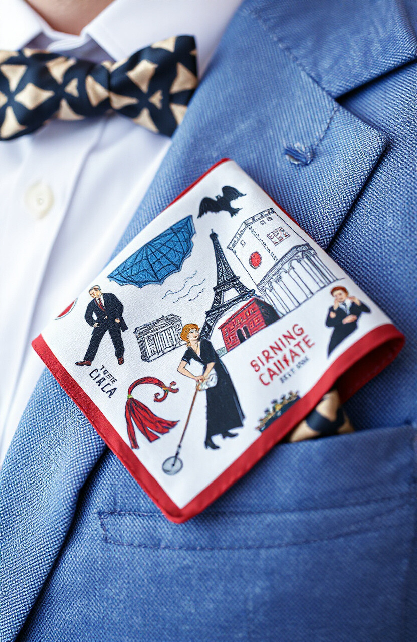 Illustrated pocket squares are creative and charming. They add an artistic touch to your attire. Perfect for art enthusiasts.