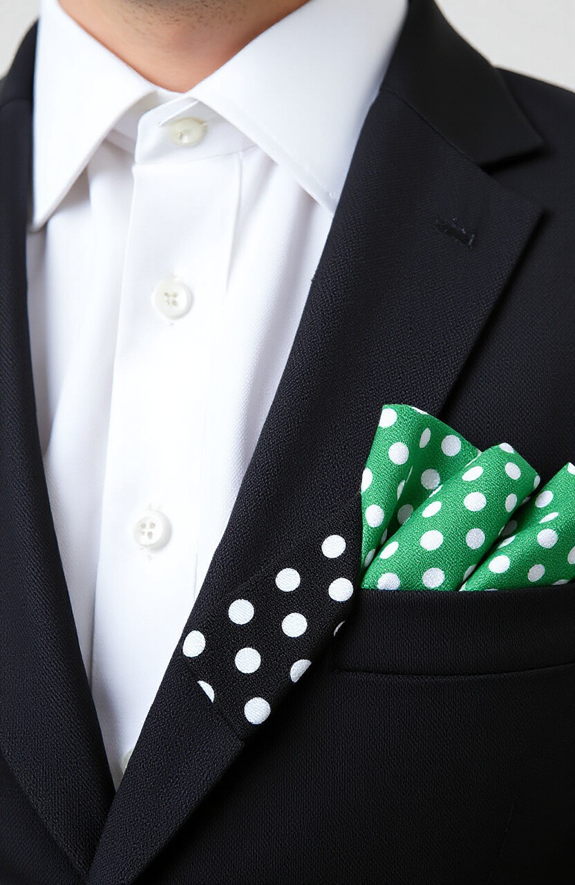 Look for dots that match or complement your tie. Bright colors can add a cheerful vibe. Affordable and available in various fabrics.