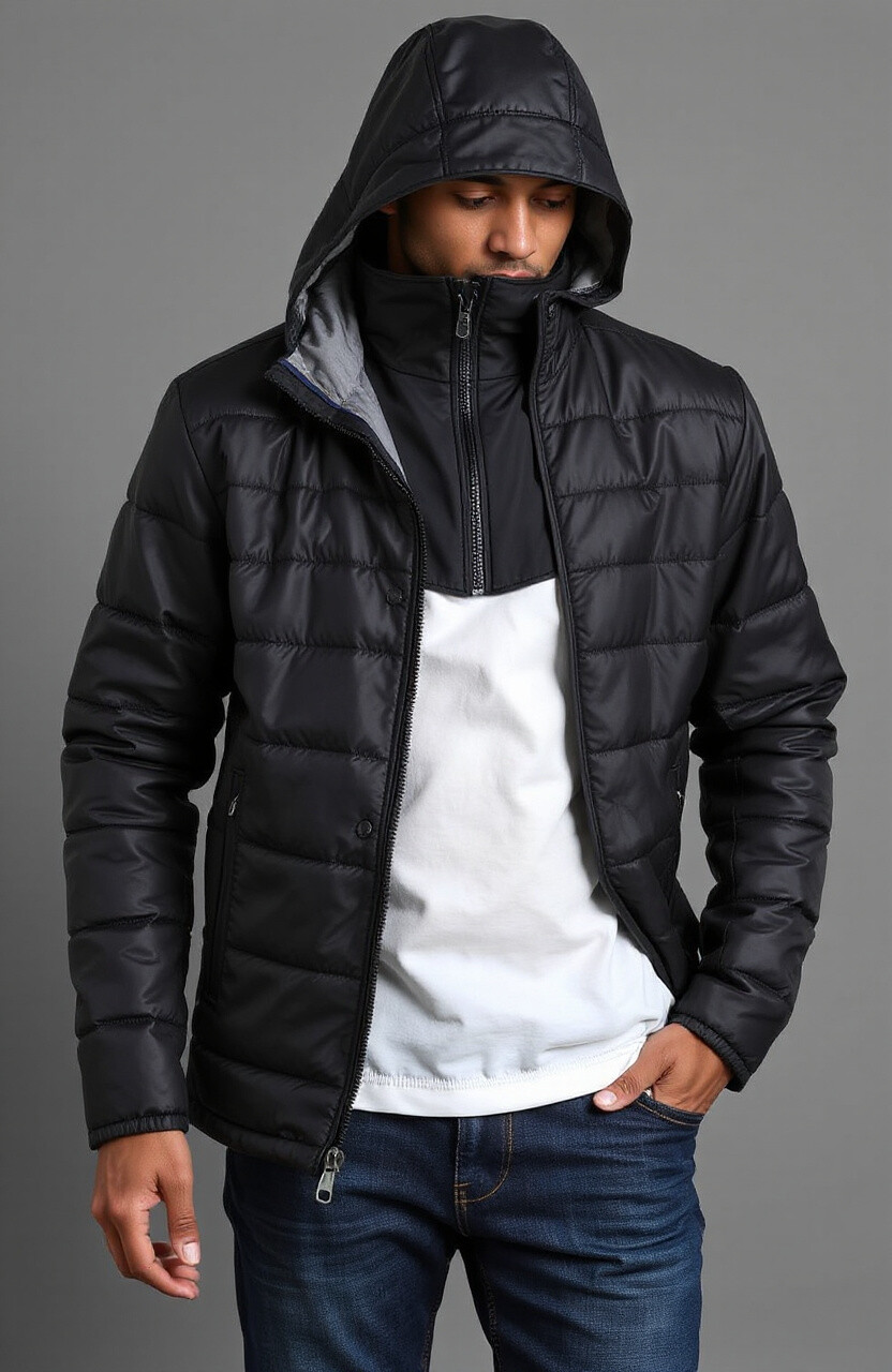 A quilted black jacket is both warm and stylish. The quilted design adds texture and interest to your look. Its water-resistant material ensures you stay dry and comfortable.