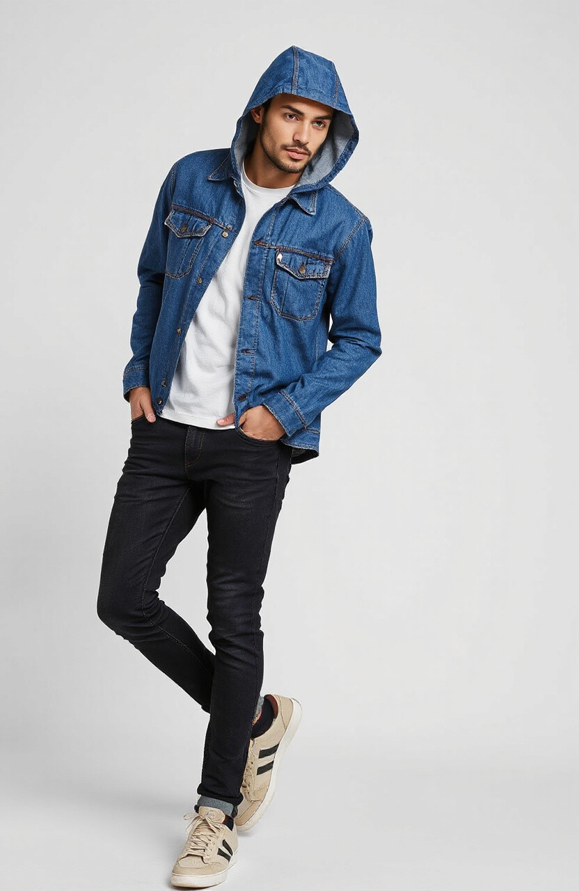 Combine style and practicality with a denim-style hooded jacket. The fabric mimics the appearance of denim, offering a trendy twist on traditional rainwear. Its water-resistant properties ensure you stay dry.