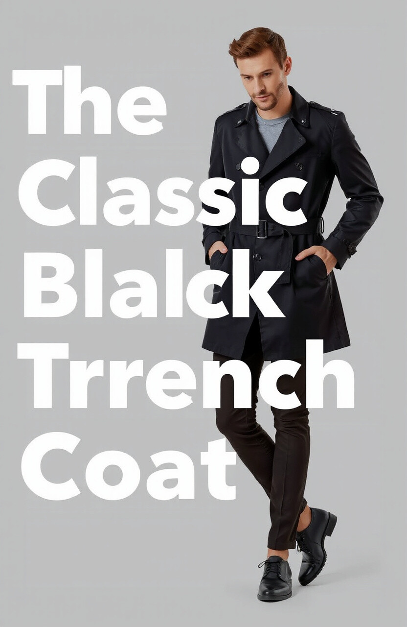 The classic black trench coat is a timeless piece that never goes out of style. Its sleek design effortlessly pairs with any outfit, making it a versatile choice for any wardrobe. The water-resistant fabric ensures you stay dry, while the belted waist adds a touch of sophistication.