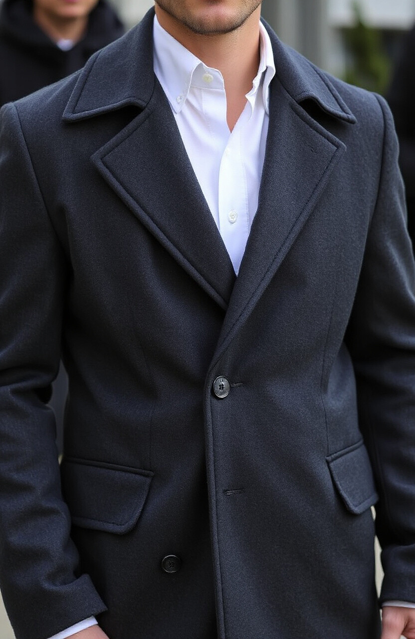 A charcoal grey peacoat is the epitome of sophistication. The classic double-breasted design is both elegant and timeless. Its dark grey hue is versatile and stylish.