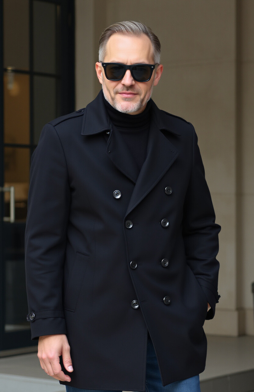 For a touch of elegance, try a double-breasted black coat. The classic design is both sophisticated and timeless. Its water-resistant fabric ensures you stay dry in style.
