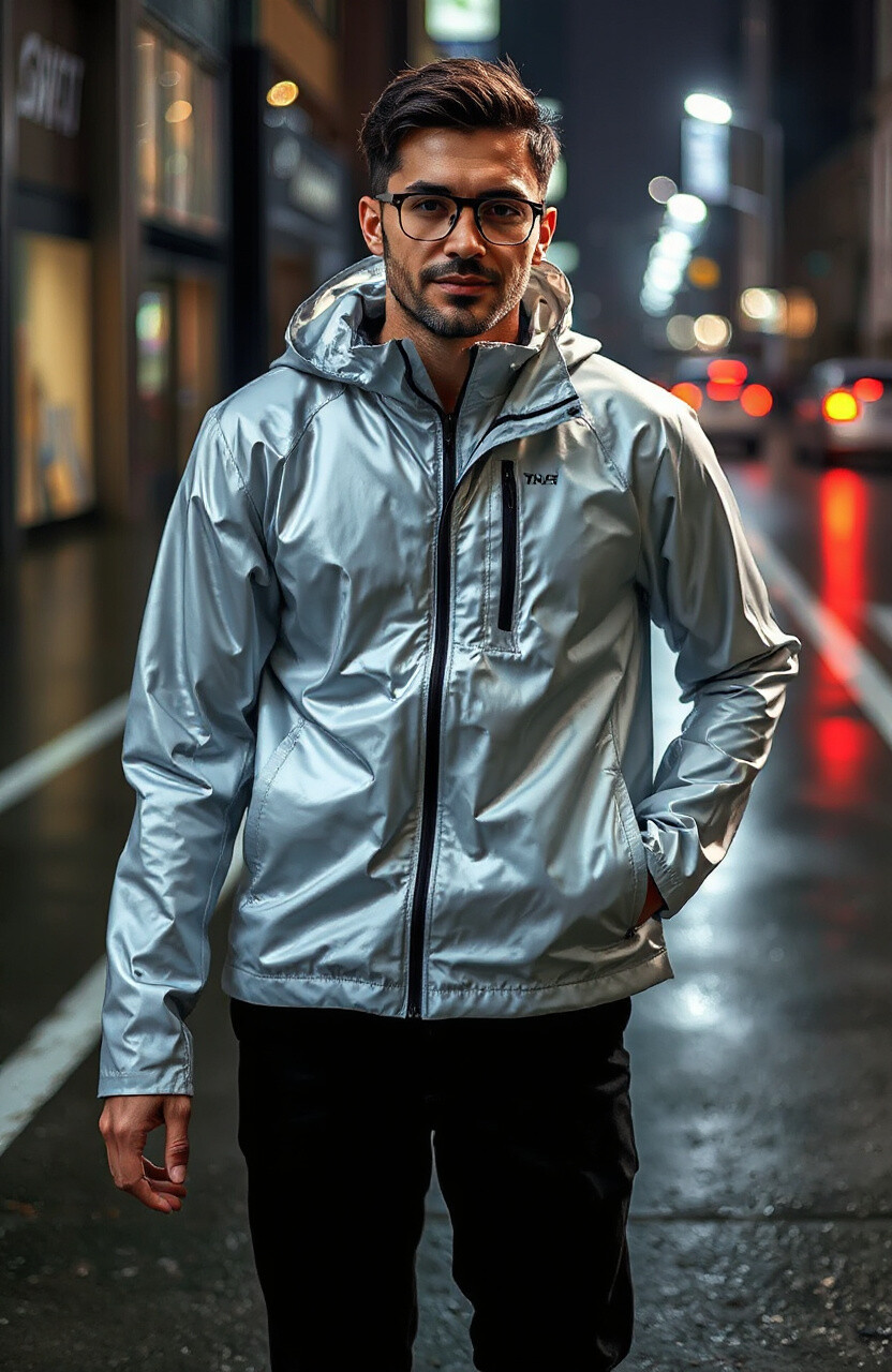 For those who prioritize safety without sacrificing style, a reflective silver jacket is a great choice. The futuristic design catches light, ensuring visibility on dark, rainy days.