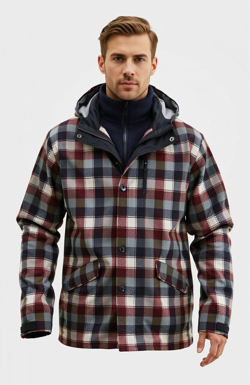 Make a statement with a bold plaid print jacket. The eye-catching pattern is both trendy and timeless. Its water-resistant fabric ensures you stay dry in style.