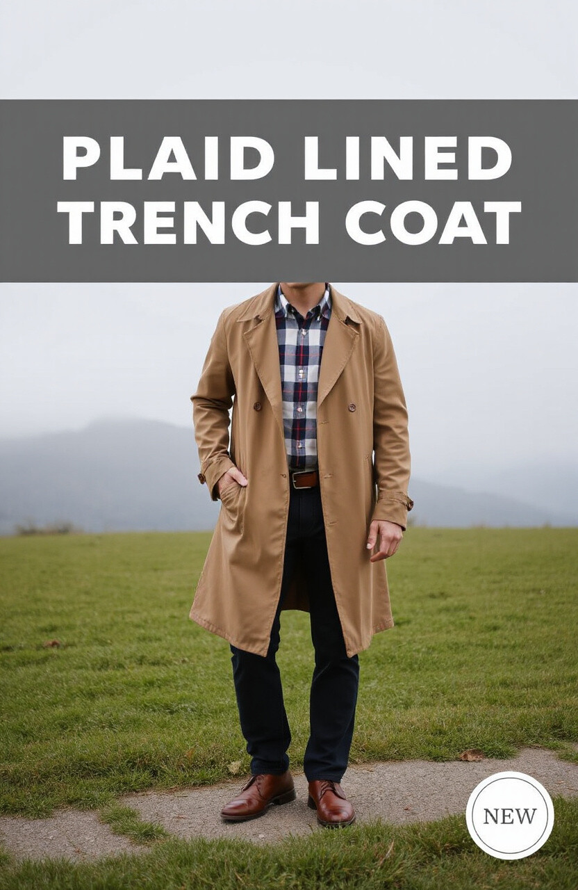 Make a statement with a plaid-lined trench coat. The classic design is both sophisticated and timeless, with a fun twist. Its water-resistant fabric ensures you stay dry in style.