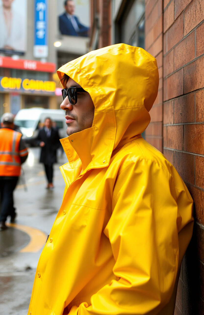 Brighten up any rainy day with a vibrant yellow slicker. This bold choice is sure to turn heads and lift spirits. Its cheerful color is a nod to classic rain gear with a modern twist.