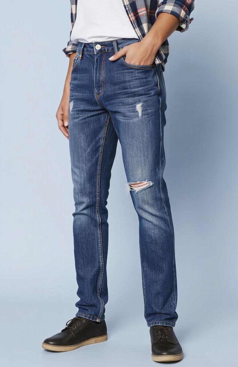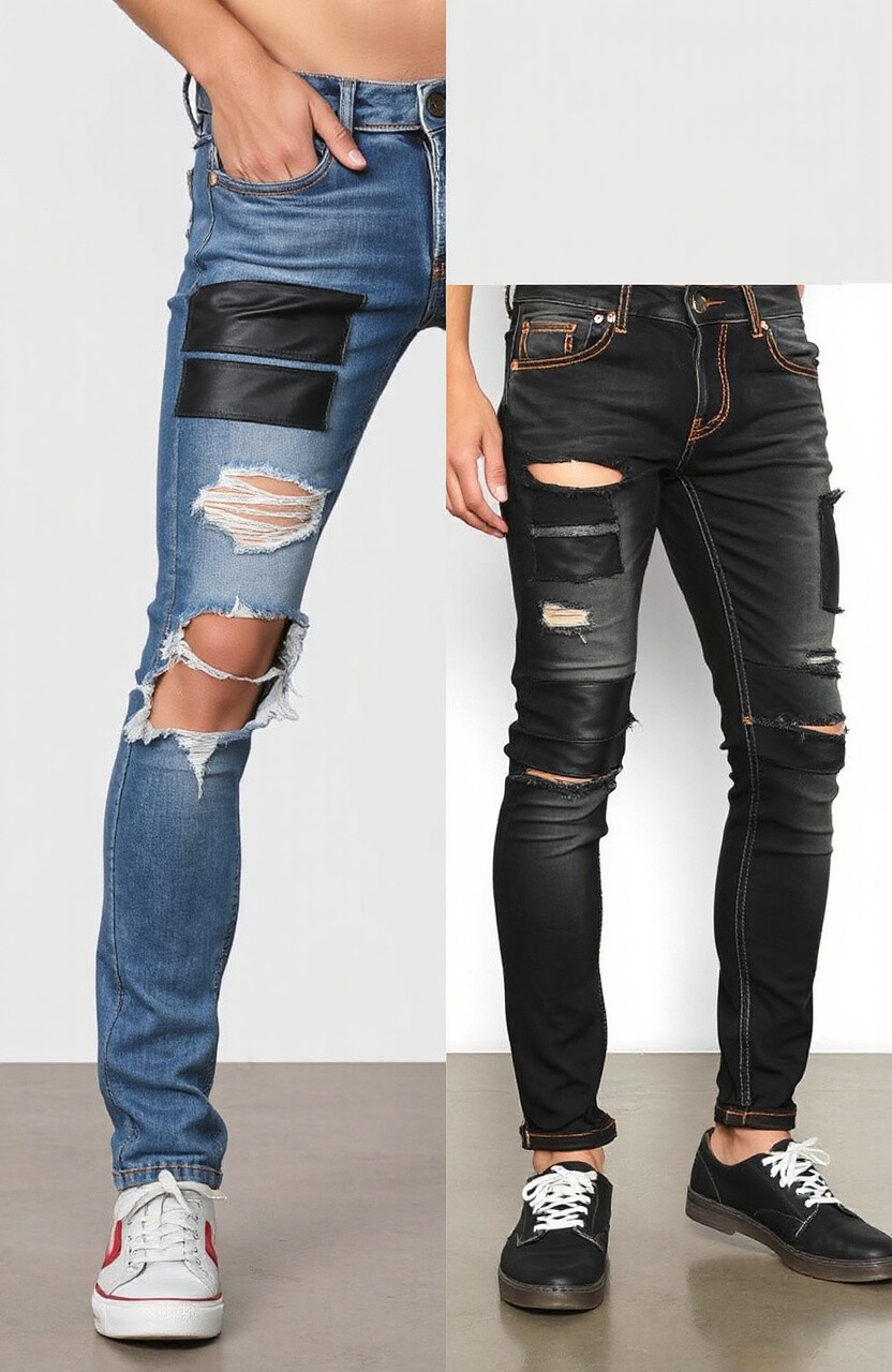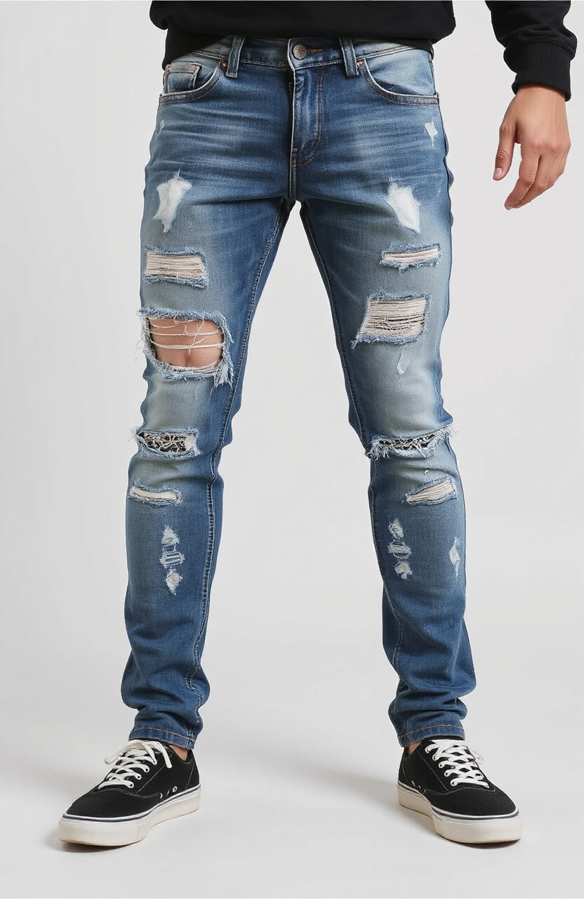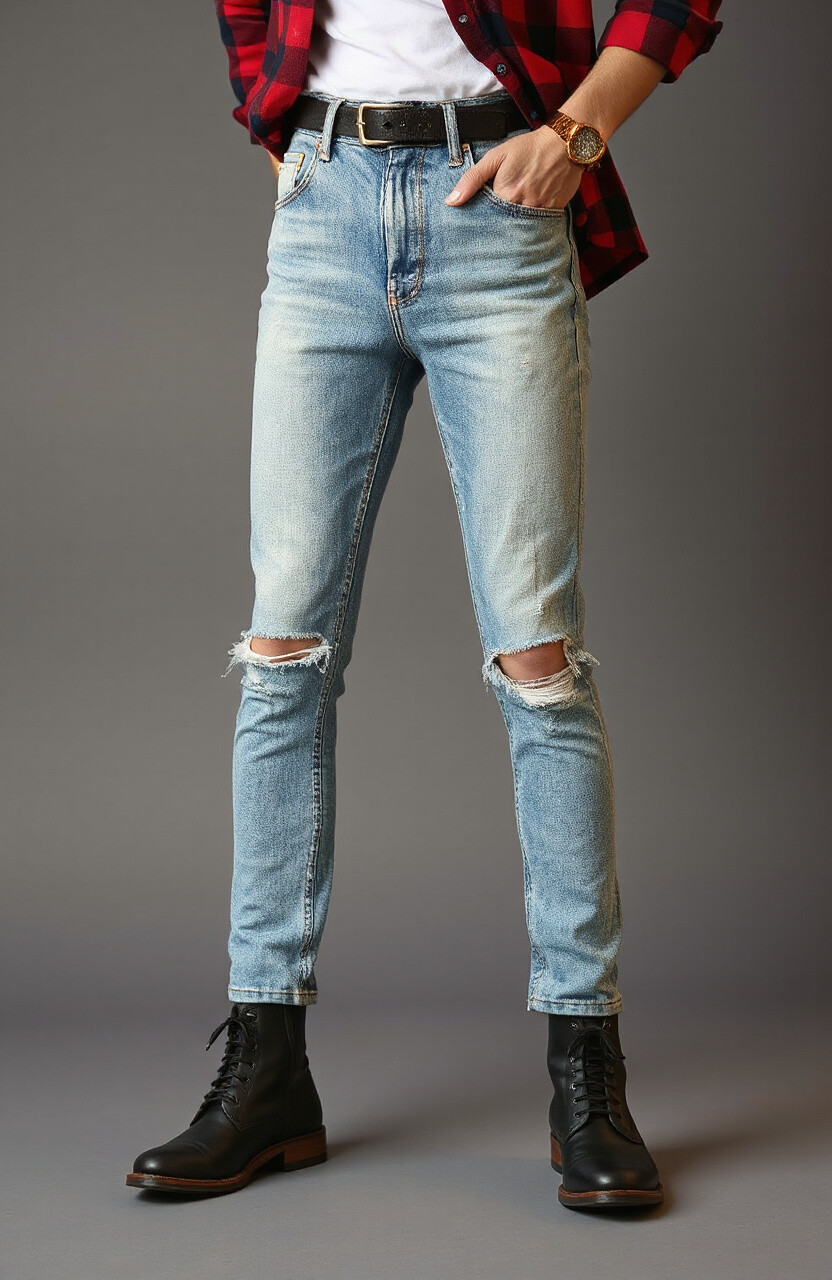 Distressed jeans offer a more rugged look with extensive rips and fraying. They’re perfect for those who love a bold, rebellious style.