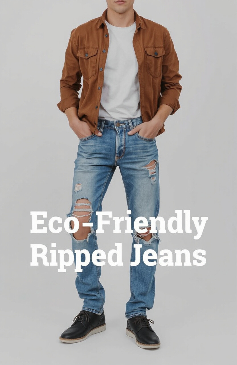 Eco-friendly jeans offer a sustainable option for fashion-conscious individuals. The rips add a modern twist to the eco-friendly design.
