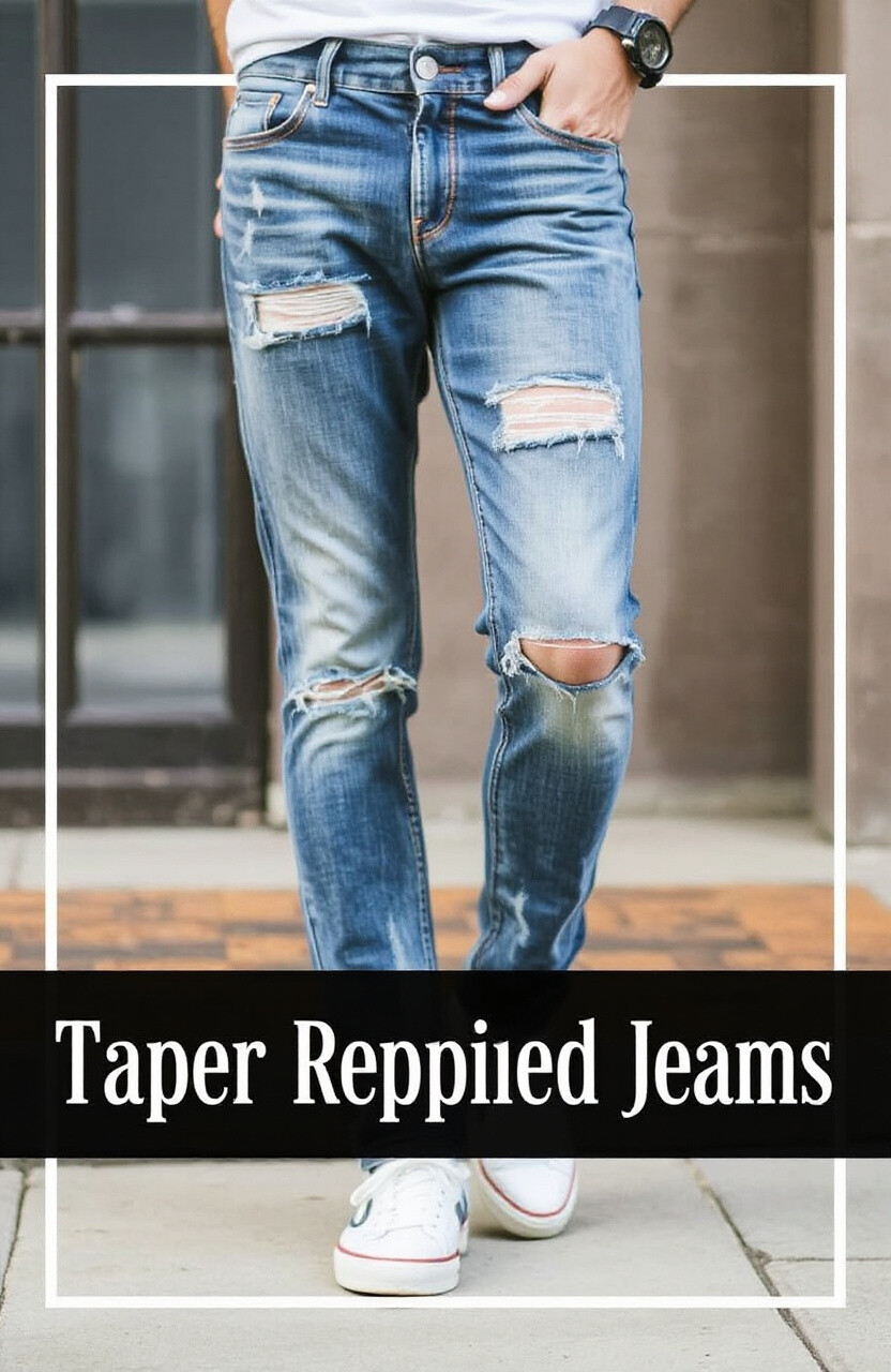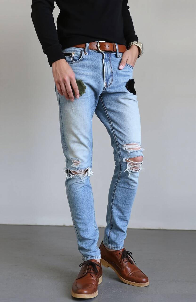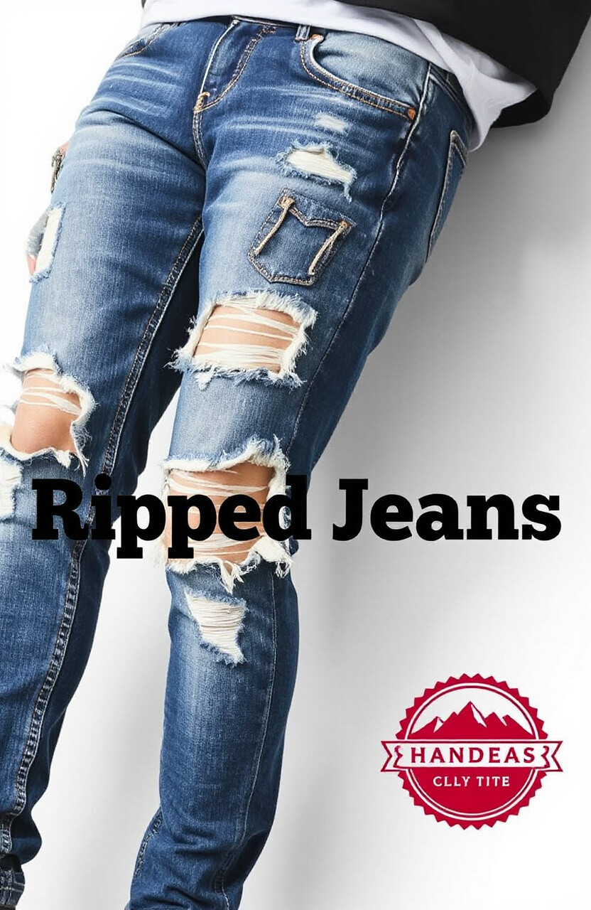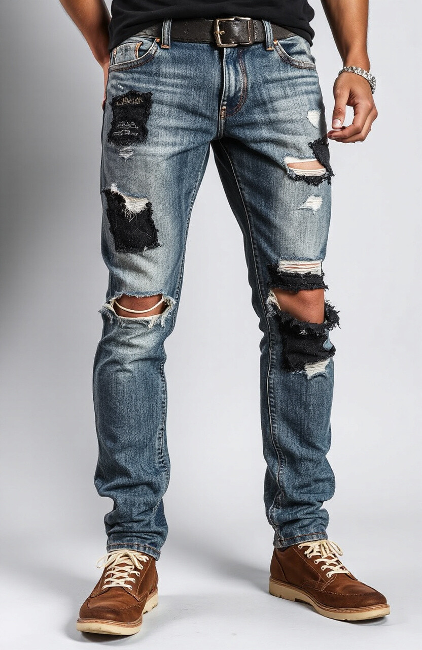 Patchwork designs add a playful element to ripped jeans. They’re perfect for those who appreciate a mix of textures and patterns.