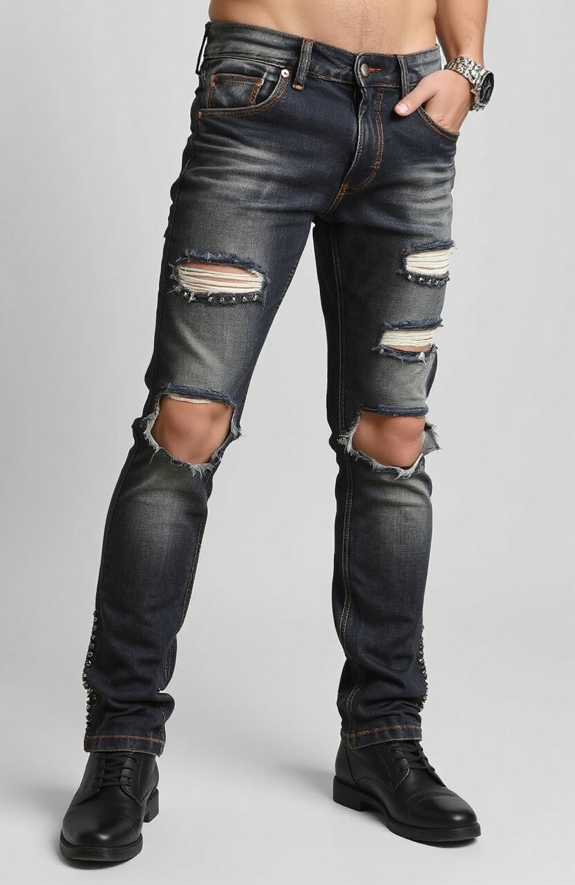 Stud details add an edgy, rock-and-roll vibe to ripped jeans. They’re perfect for those who love to make a statement with their style.