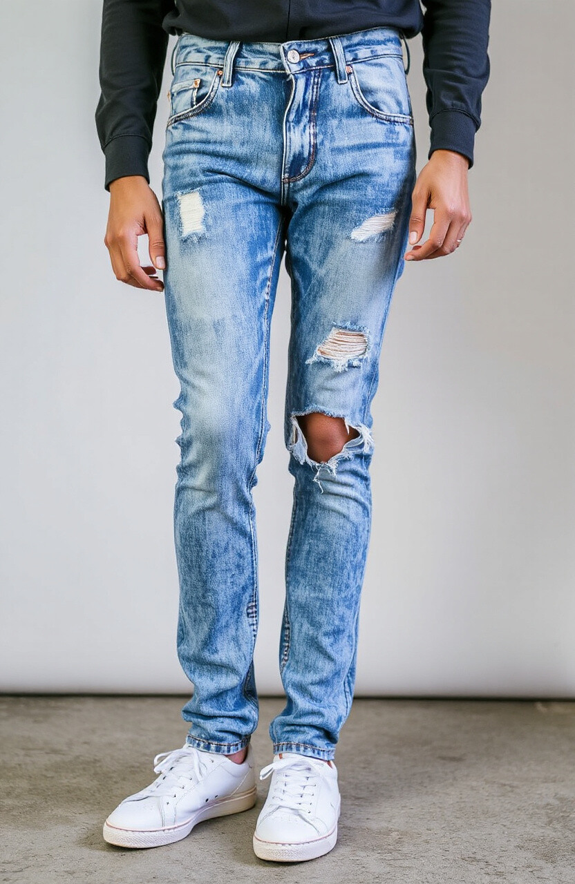 Acid wash brings a retro flair to any outfit, and when combined with rips, it creates a bold statement. These jeans are for the fashion-forward individual who isn’t afraid to take risks.
